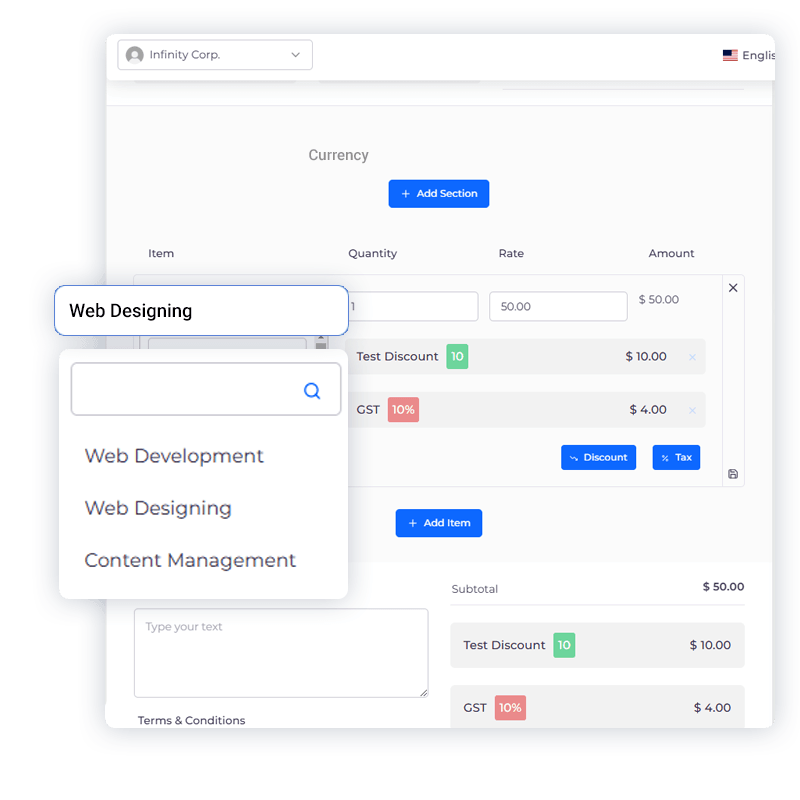 Meet your clients’ unique needs. Apply versatile tax and discount settings to make your proposals even more appealing.