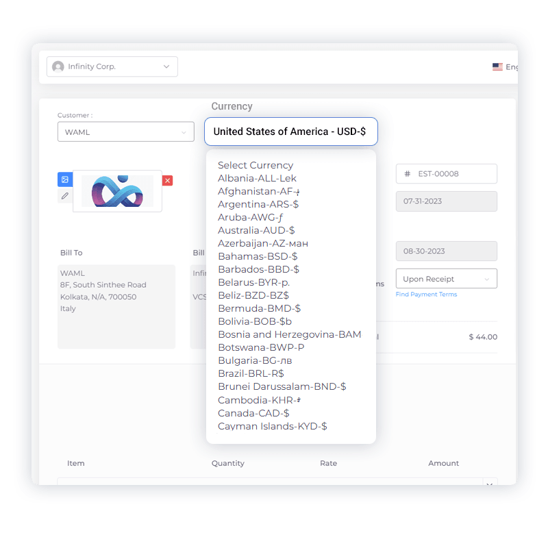 Go global without the hassle. Provide estimates in a variety of currencies to cater to an international clientele.