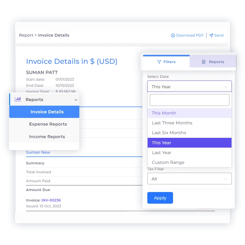 Navigate the financial intricacies of your business seamlessly with Invoice Crowd’s sophisticated reporting feature. With a few clicks, gain insights into your financial trajectory, understand trends, and make informed decisions.
