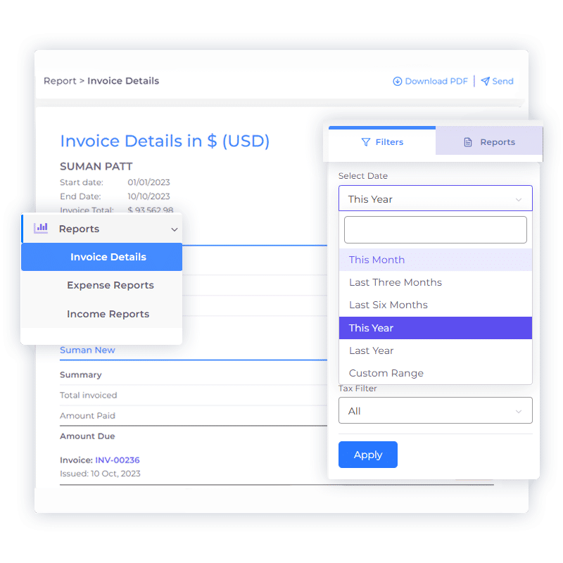 Navigate the financial intricacies of your business seamlessly with Invoice Crowd’s sophisticated reporting feature. With a few clicks, gain insights into your financial trajectory, understand trends, and make informed decisions.