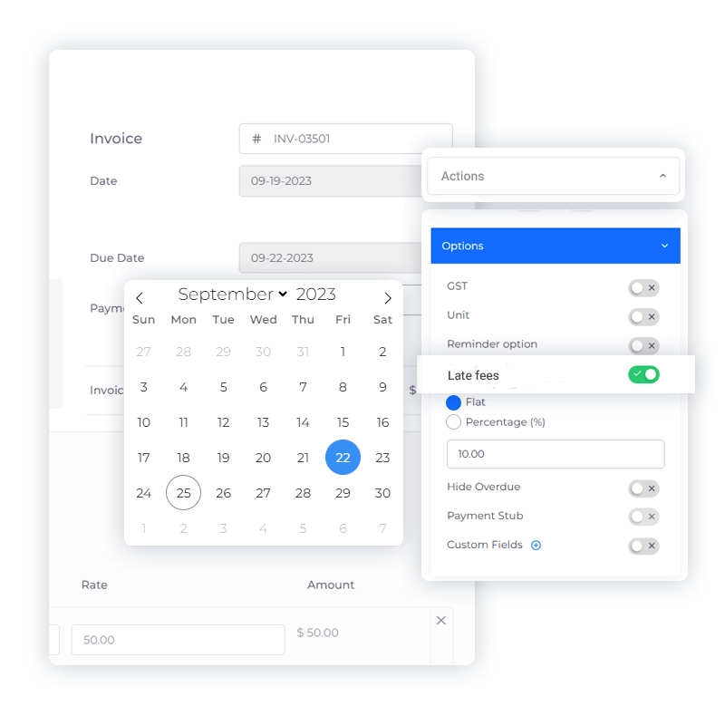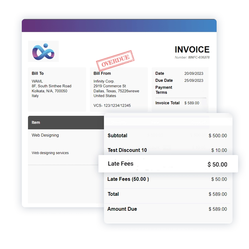 Ensuring timely payments is crucial for maintaining healthy cash flow in a business. With Invoice Crowd’s intuitive Late Fees Management feature, automate the addition of late fees to overdue invoices, encouraging prompt payments and safeguarding your revenue stream.