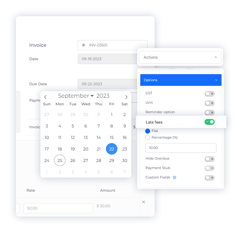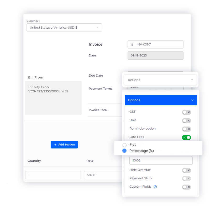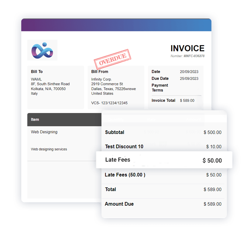 Ensuring timely payments is crucial for maintaining healthy cash flow in a business. With Invoice Crowd’s intuitive Late Fees Management feature, automate the addition of late fees to overdue invoices, encouraging prompt payments and safeguarding your revenue stream.