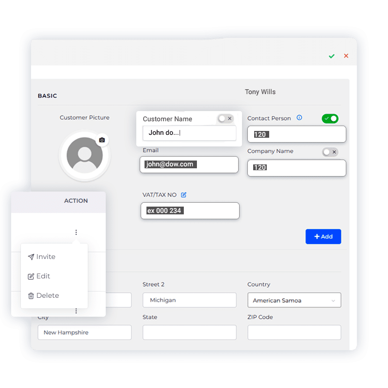 Update a customer’s contact details effortlessly, ensuring your database is always up-to-date.