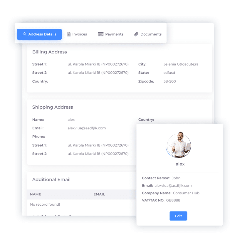 At a glance, view all the essential details of a customer — from contact information to their purchase history.