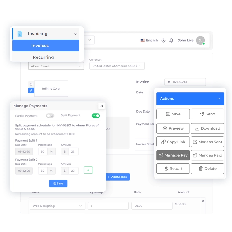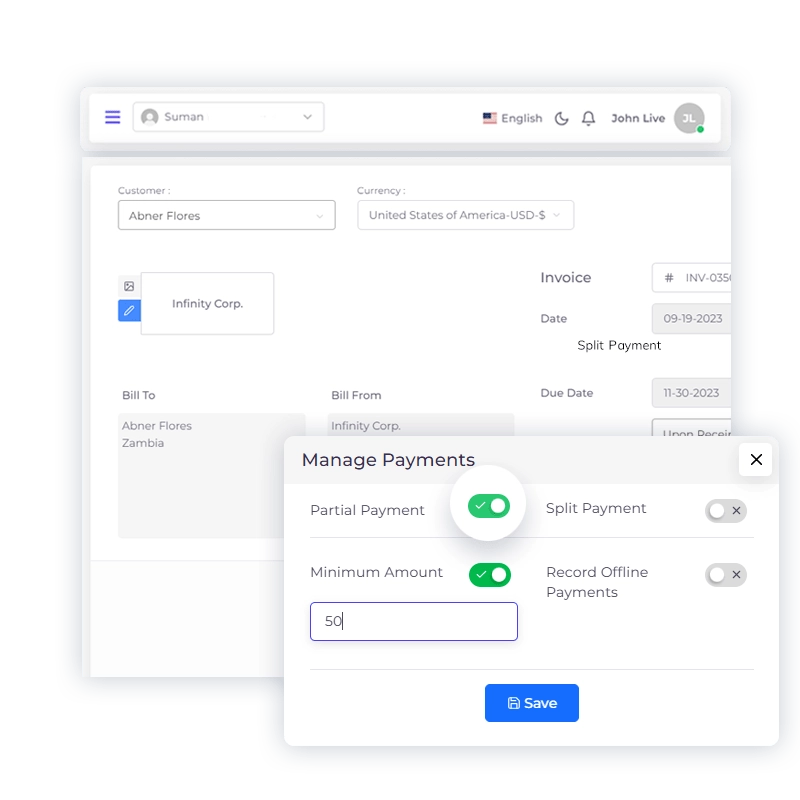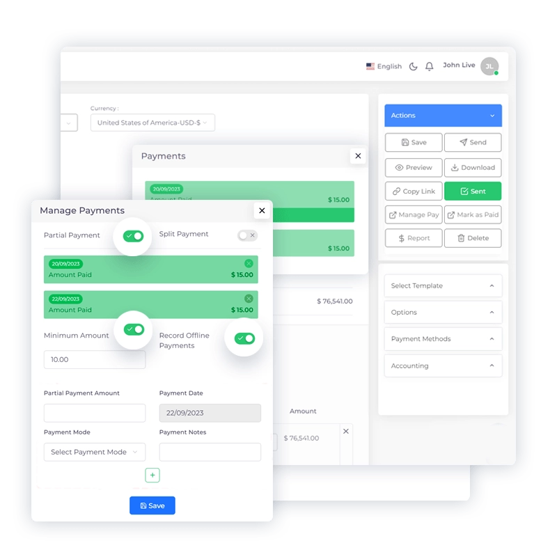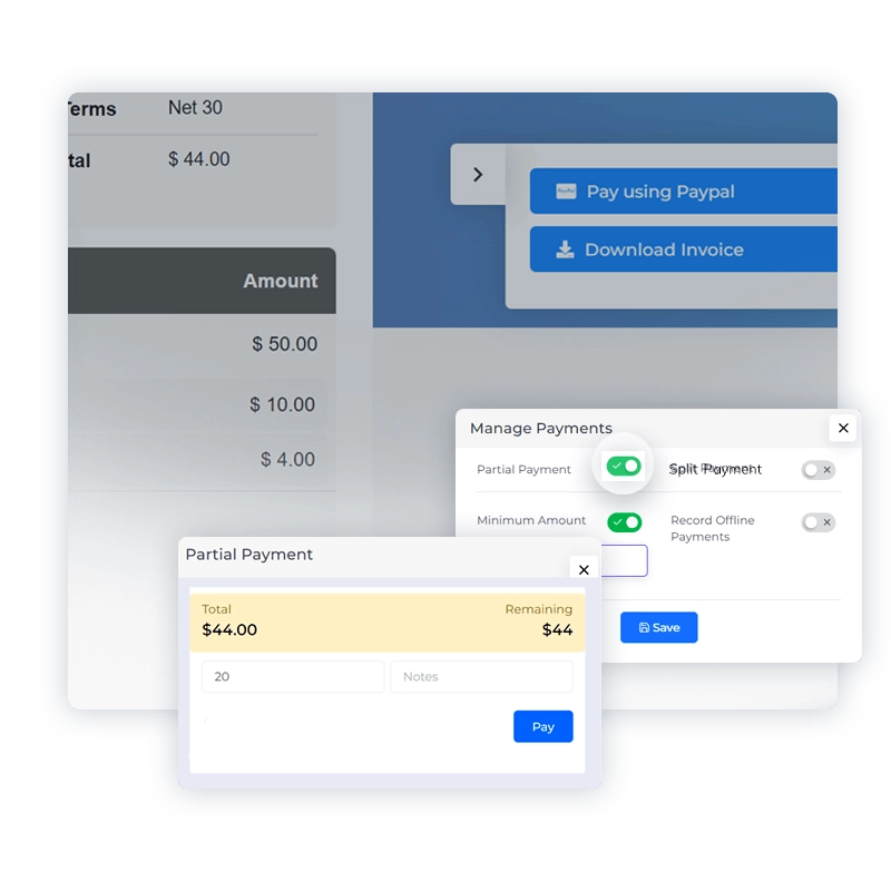 In the versatile business landscape, flexibility in payment methods is paramount. With Invoice Crowd’s Split and Partial Payment options, you can cater to the unique financial circumstances of each client, ensuring transactions are seamless and accommodating.