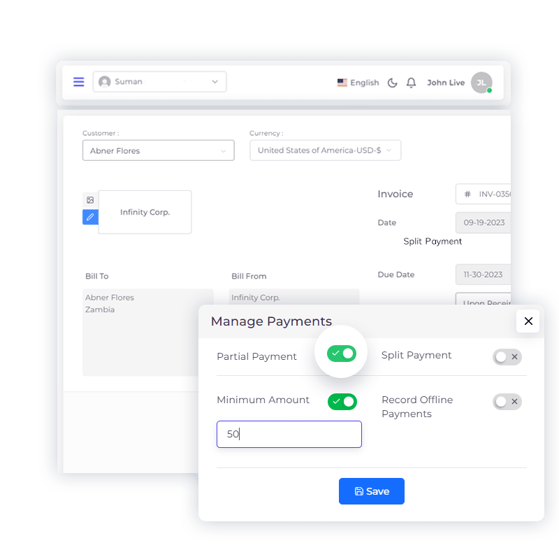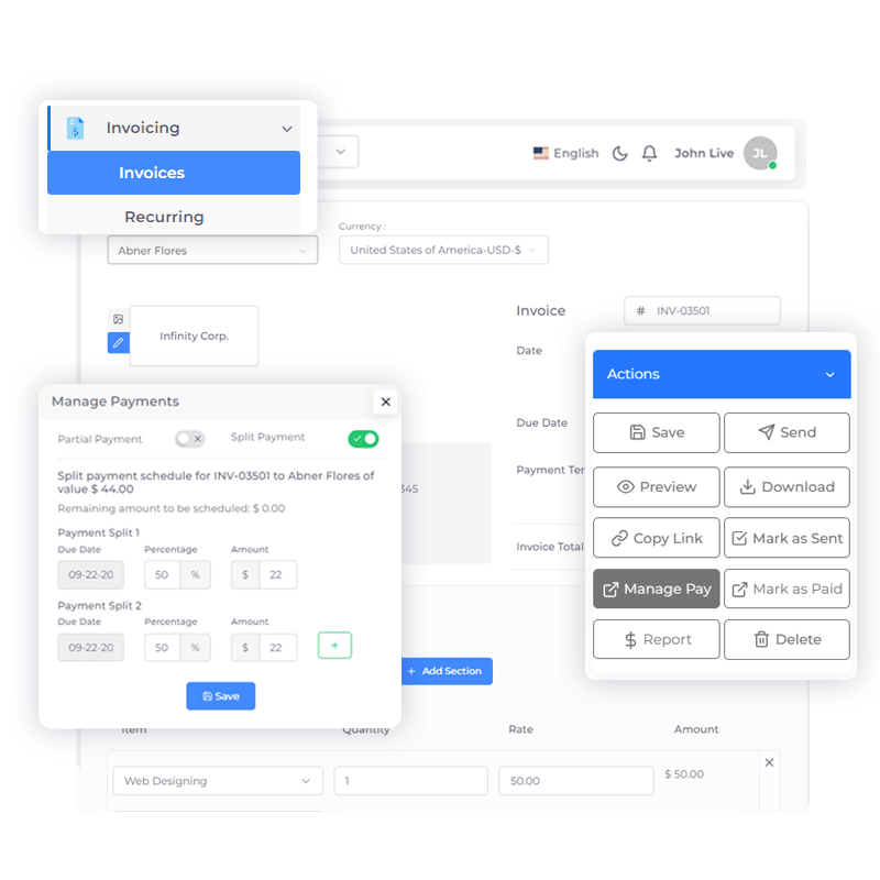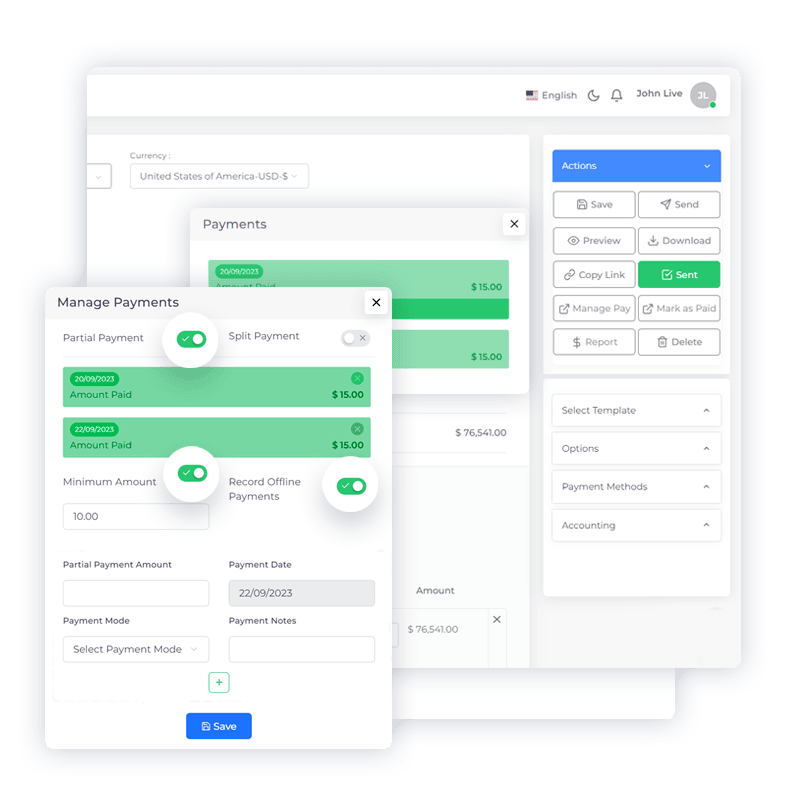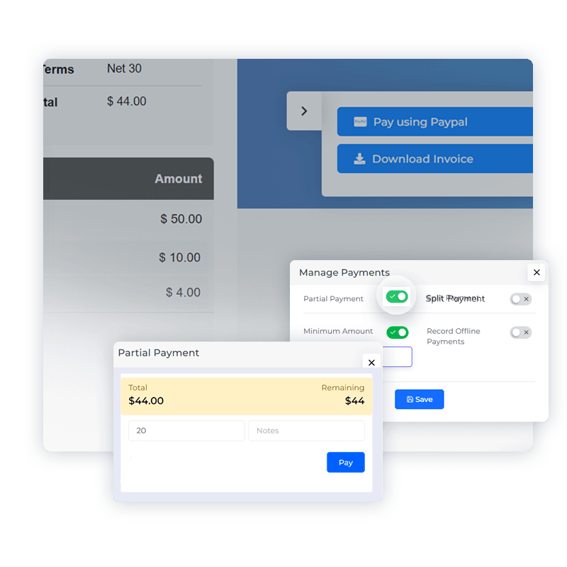 In the versatile business landscape, flexibility in payment methods is paramount. With Invoice Crowd’s Split and Partial Payment options, you can cater to the unique financial circumstances of each client, ensuring transactions are seamless and accommodating.