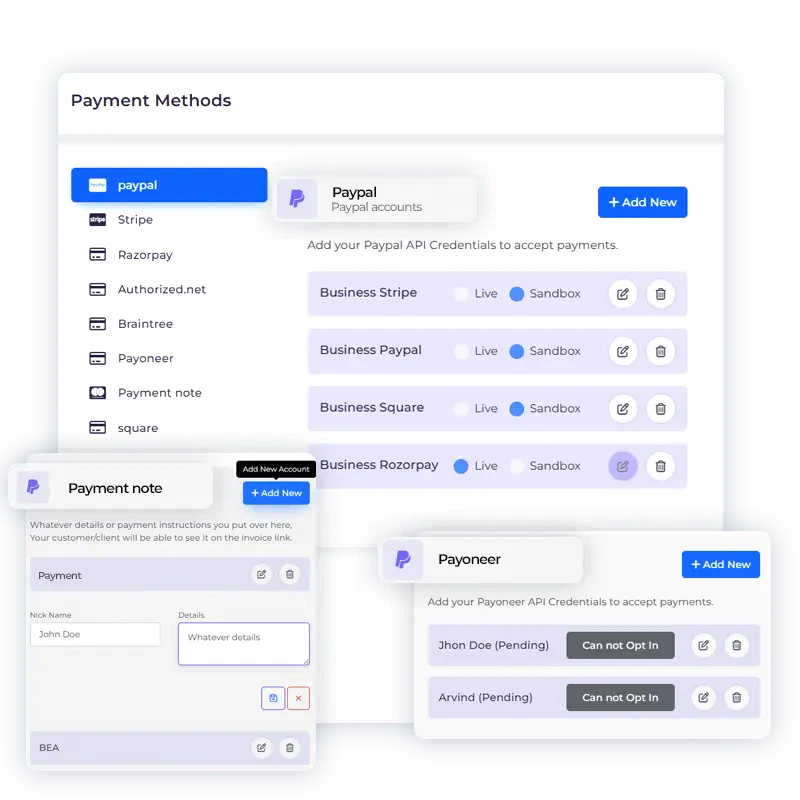 Integrate with PayPal, Stripe, Payoneer, and more. Offer your clients flexible payment options, ensuring smooth and secure transactions.