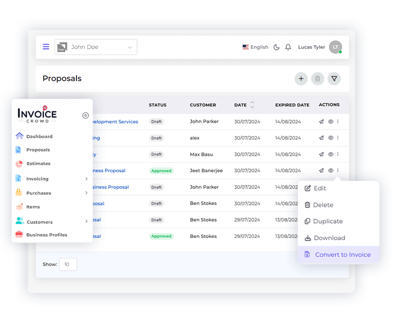 Easily convert approved proposals into invoices with just a few clicks. Save time and ensure accuracy, eliminating the need for manual data entry.